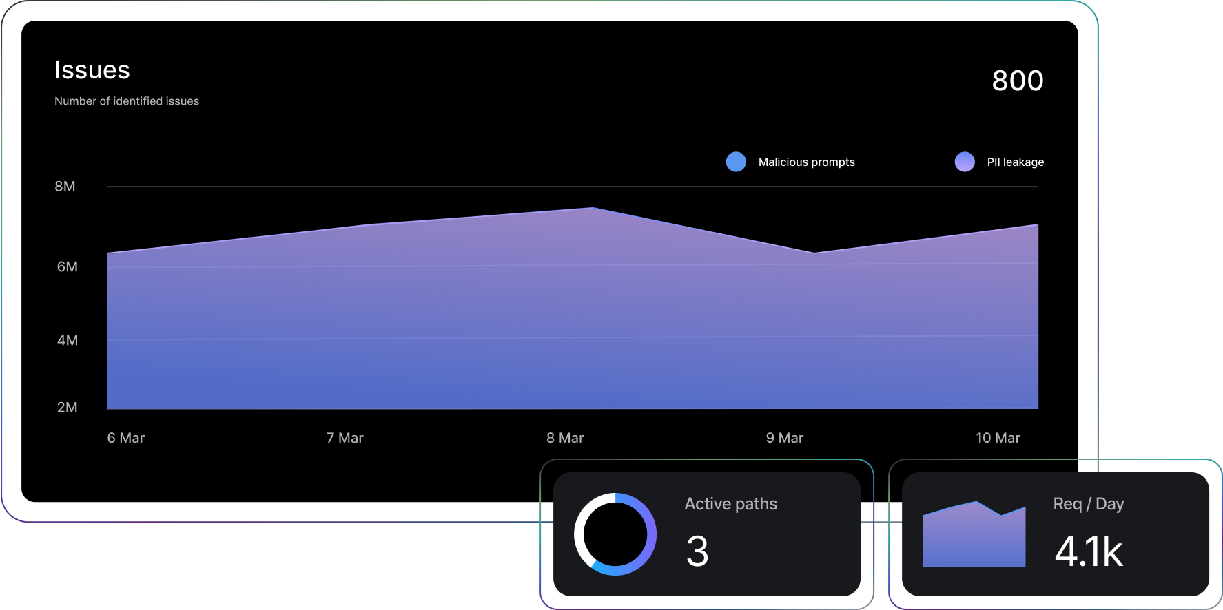 Detecta amenazas a medida que ocurren con alertas en tiempo real y una visibilidad profunda en el comportamiento de LLMs. Monitorea conversaciones, se帽ala anomal铆as y garantiza seguridad y cumplimiento en cada paso.
